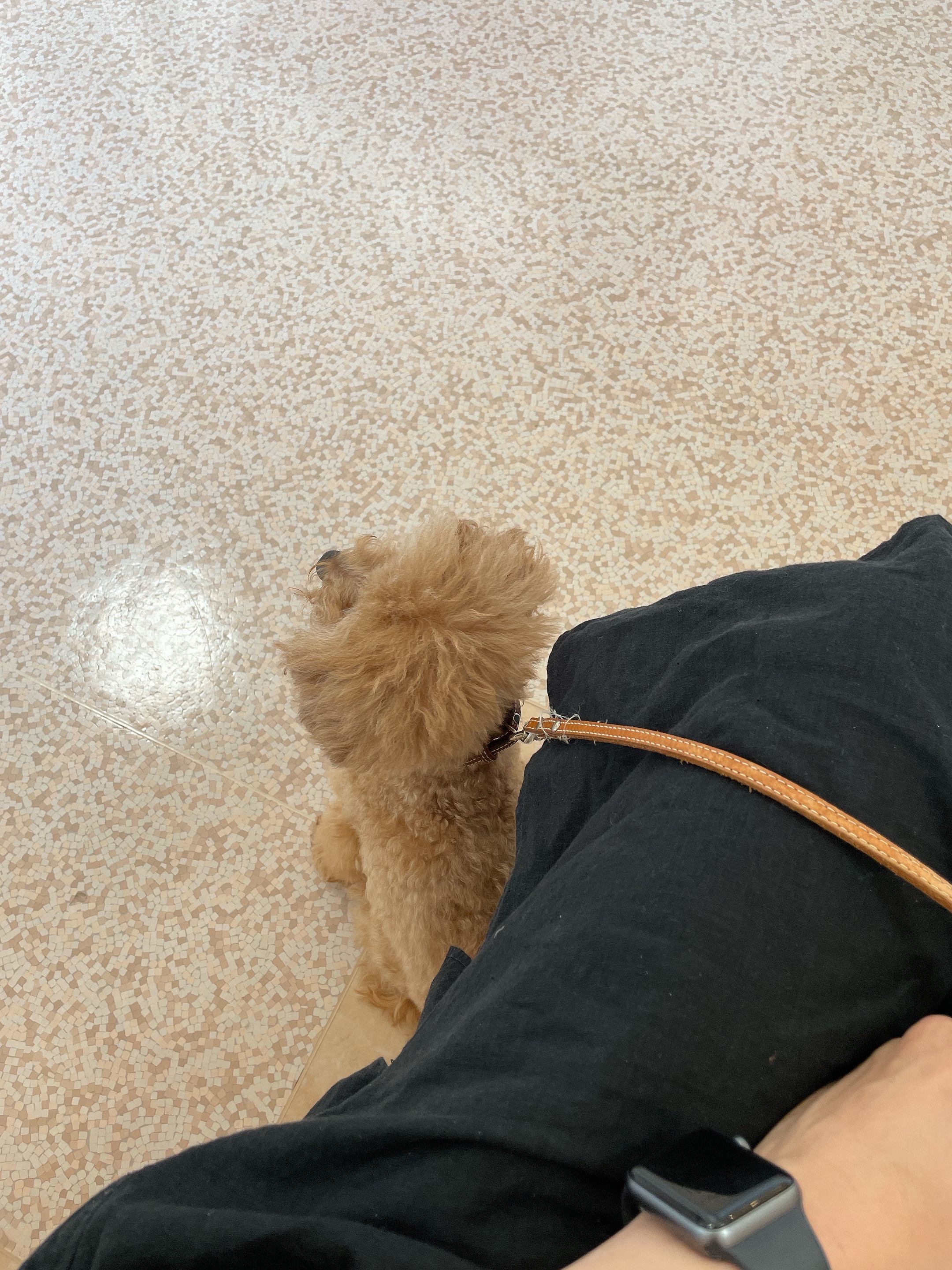 先生が『どうぞぉ』とドアを開けた瞬間、私の足の間に隠れてぶるぶる(笑)