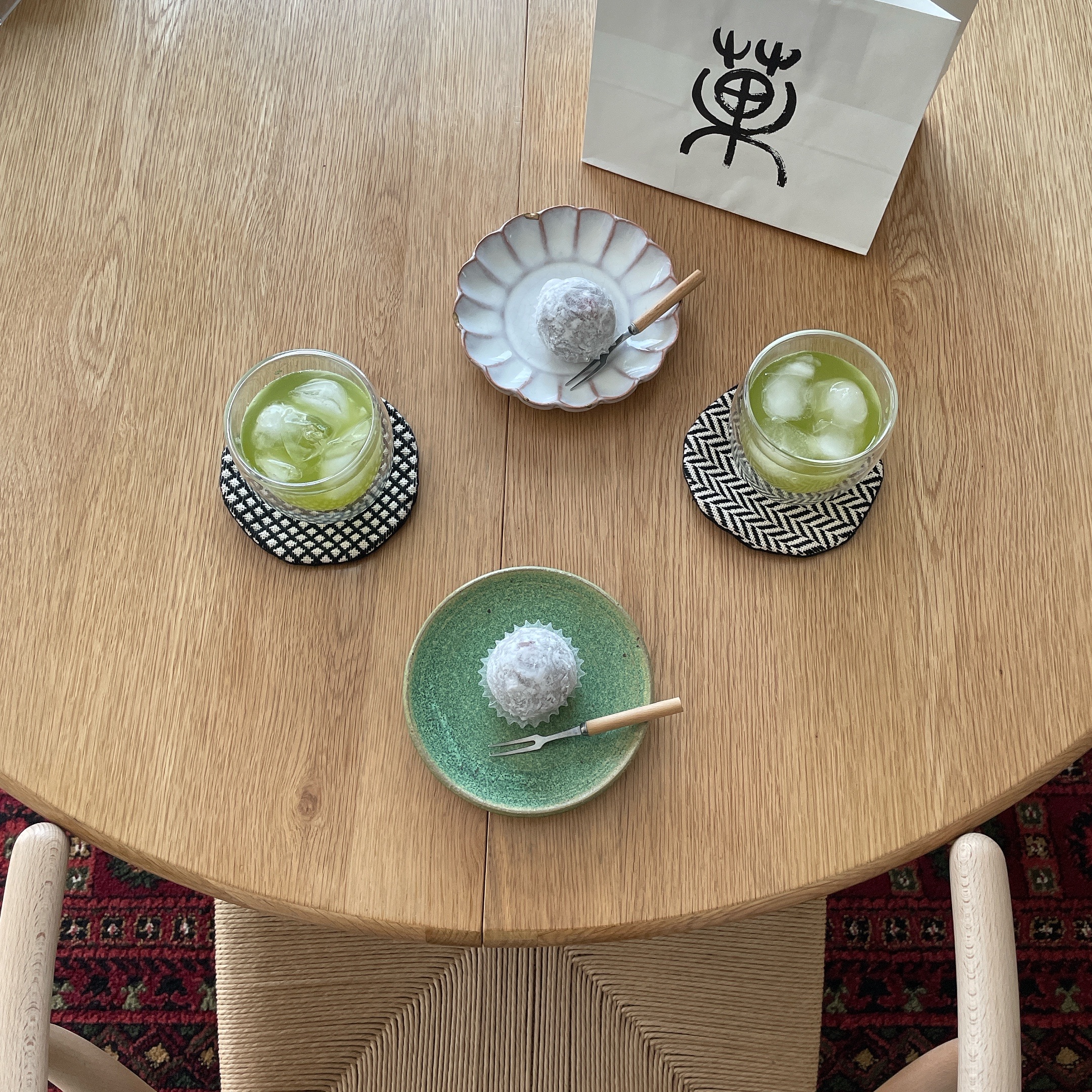 抹茶の美味しそうなやつにご満悦の娘と、まだ唐揚げに夢中な息子( ‾ʖ̫‾)