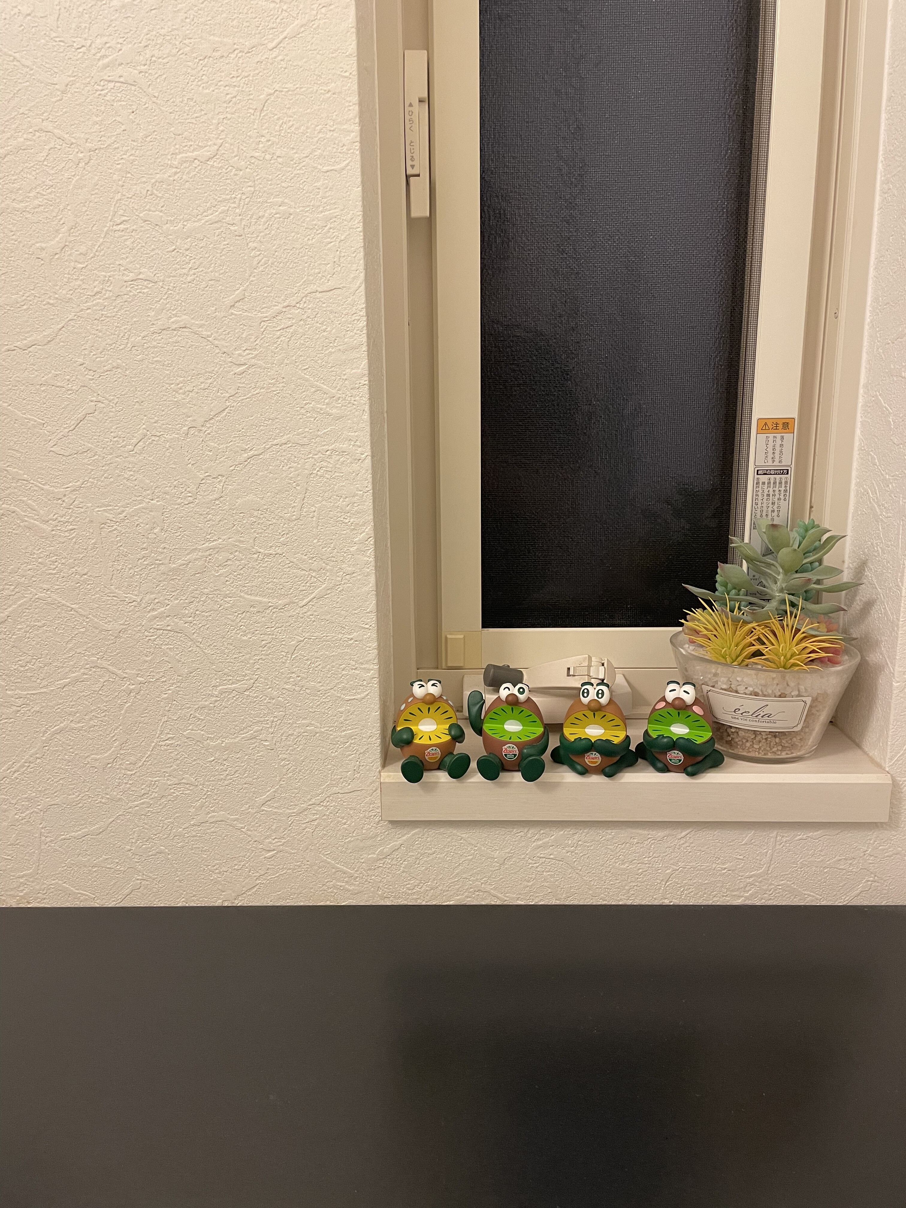 ちなみに私の愛車にも別バージョンのキウイが2体乗ってるし、キッチンにも2体。